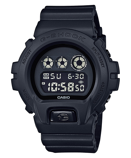 From G-SHOCK, the watch that sets the standard for timekeeping toughness, comes the latest models to feature basic G-SHOCK black that captures the essence of one-tone resin. These models are based on the DW-6900, which is designed to withstand impact from any direction. A simple matte black finish allows the form of the watch itself to come out, while the buckle and buttons have a black ion plate finish.
