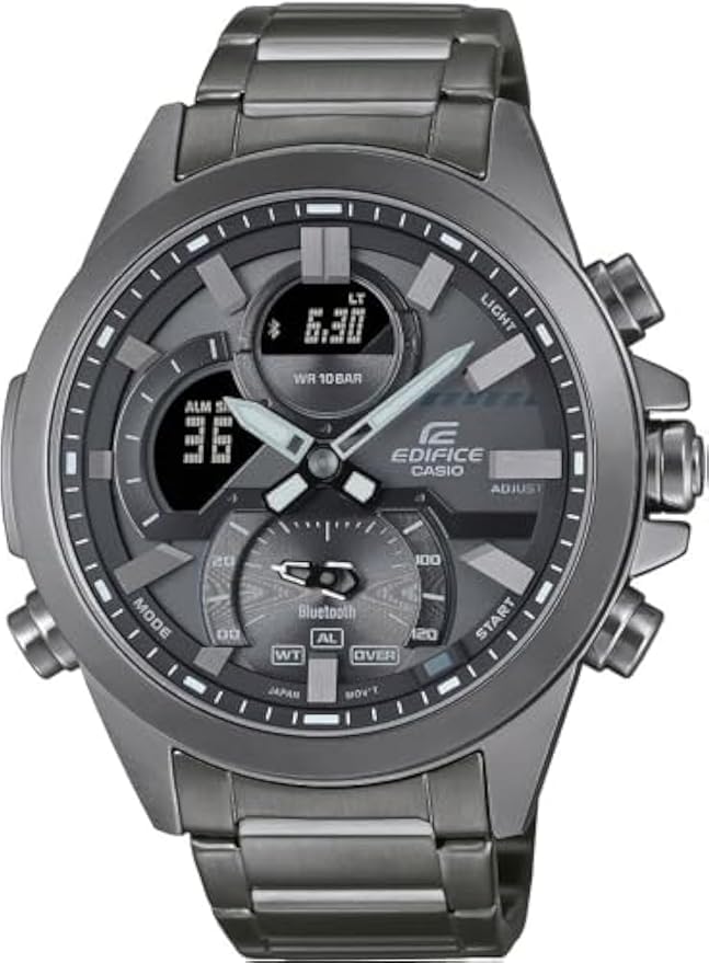 Hand shift feature (Hands move out of the way to provide an unobstructed view of digital display contents.) Airplane mode 12/24-hour format Schedule beeper on/off Date/month display swapping Day display (days of the week selectable in six languages) Regular timekeeping: Analog: 2 hands (hour, minute (hand moves every 20 seconds)), 1 dial (linked to each mode) Digital: Hour, minute, second, pm, month, date, day Button operation tone on/off