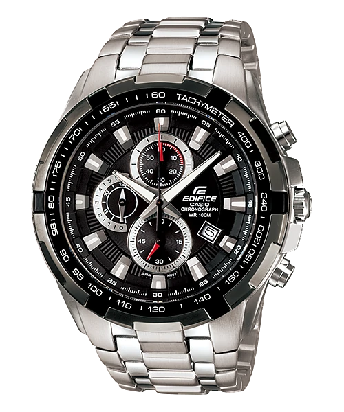 A sporty chronograph with a big face. The two-tone bezel, which looks like ion-plated stainless steel covered with separate parts, creates an overall dynamic design.