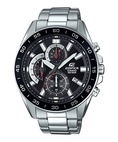 A large standard EDIFICE chronograph. Use of an extra-thick inset dial creates a powerful, dynamic design.