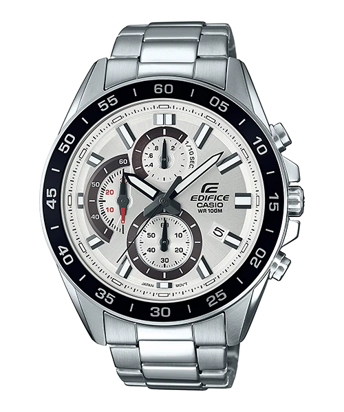 A large standard EDIFICE chronograph. Use of an extra-thick inset dial creates a powerful, dynamic design.