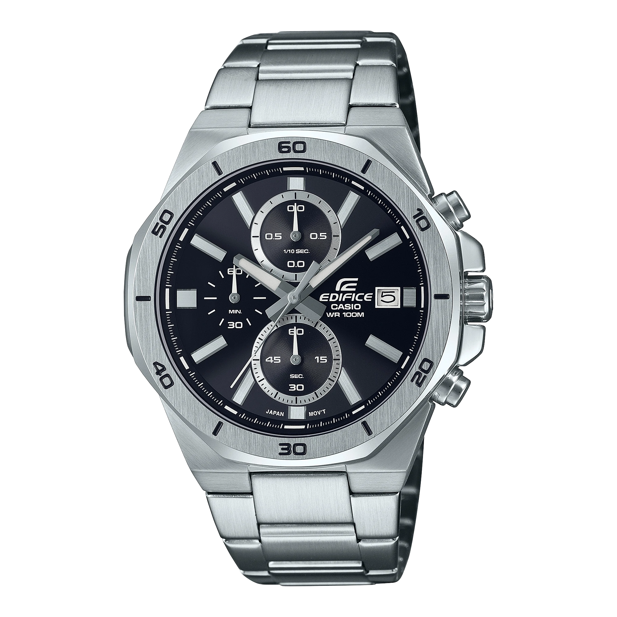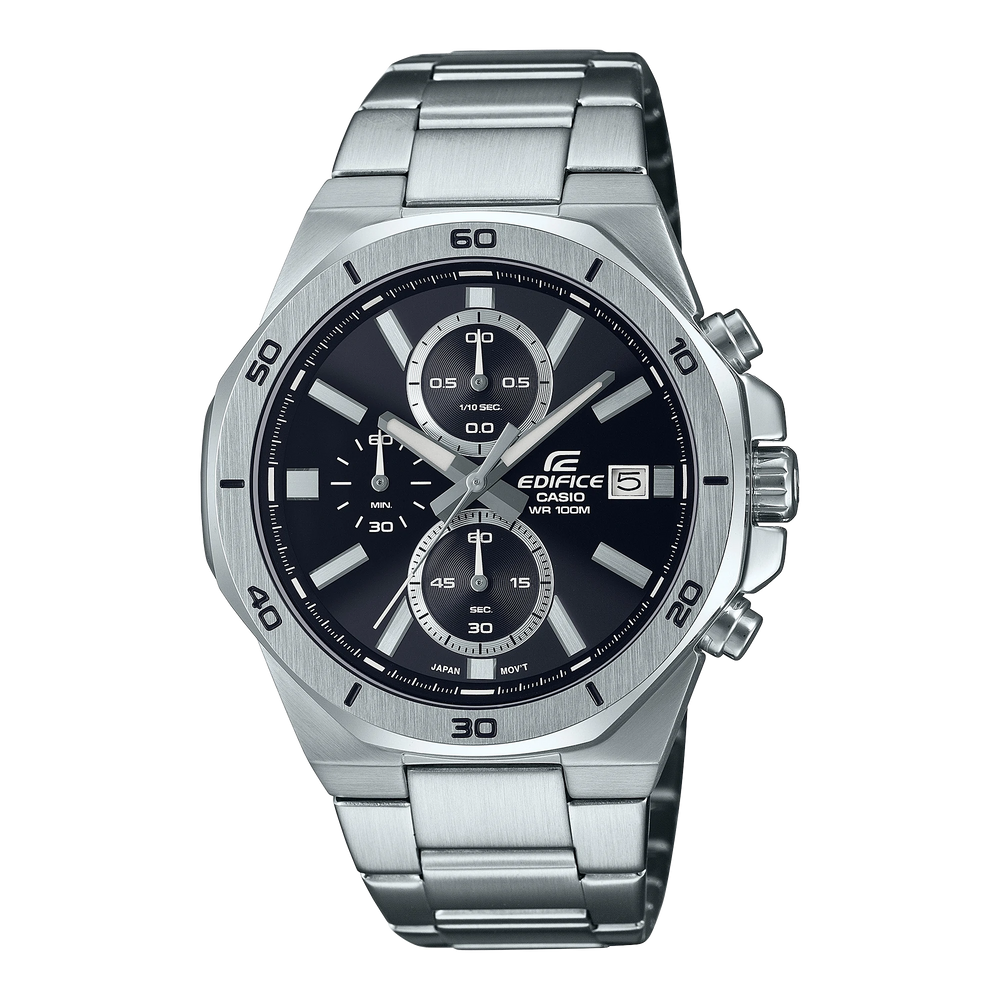 Make a dynamic, bold statement — a classic EDIFICE sports chronograph with an octagonal bezel in a solid, strong design.