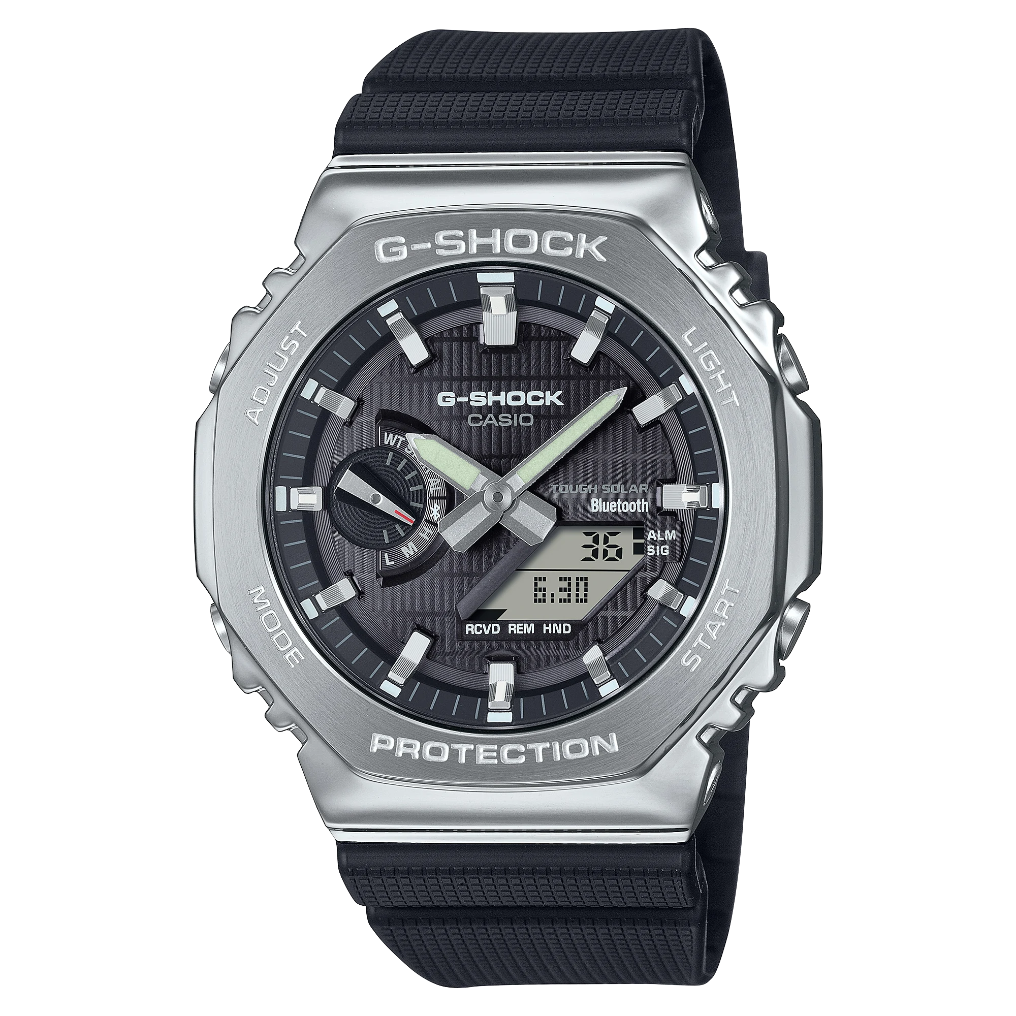 Metal-clad daring meets sophisticated gleam in a GBM-2100 that delivers Smartphone Link via Bluetooth® and Tough Solar charging system, all in a meticulously finished metal design with iconic octagonal bezel....