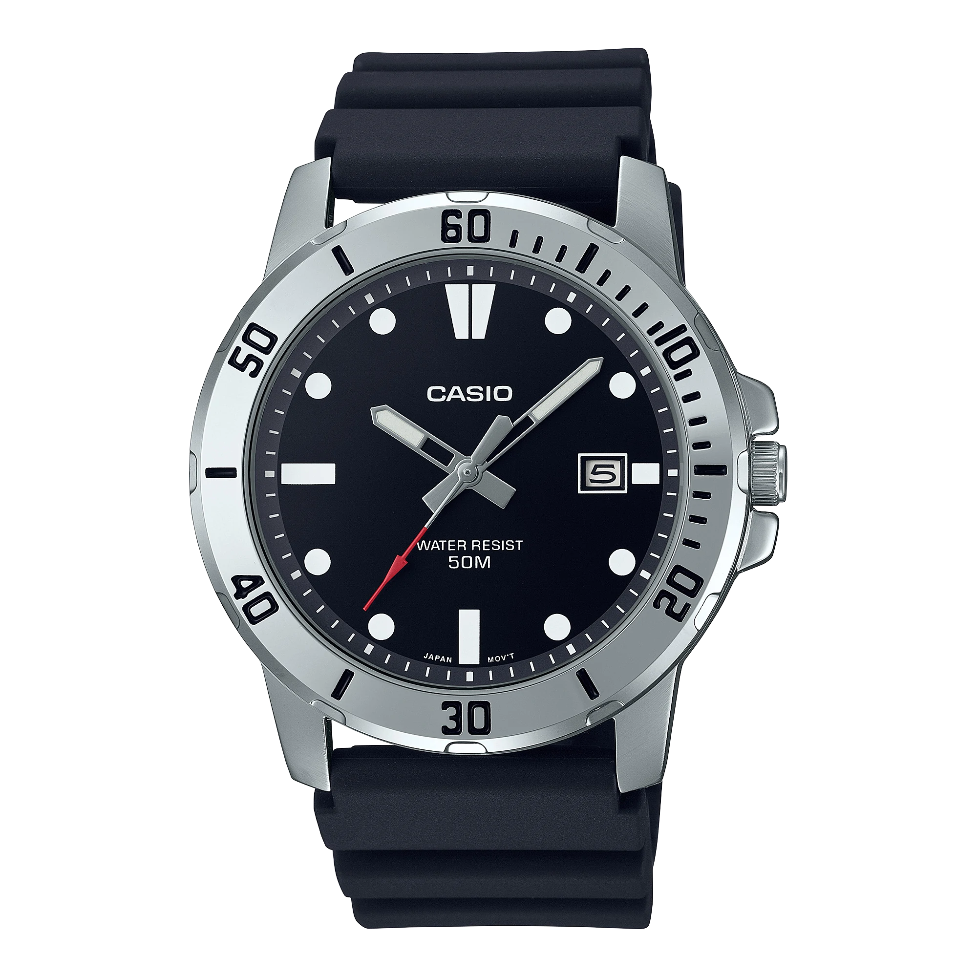 Venture into the realm where metal and urethane meet in a sporty analog design. With water resistance up to 50 meters, you can feel free from worry whether out in...