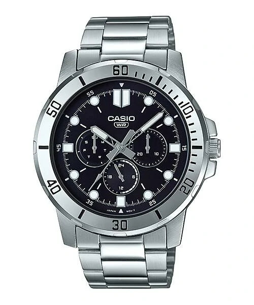 • Water resistant • Date, day and 24-hour indicator • Stainless steel band