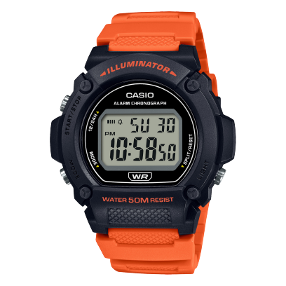 • 50-meter water resistance • 1/100-second stopwatch • Daily alarm • LED backlight