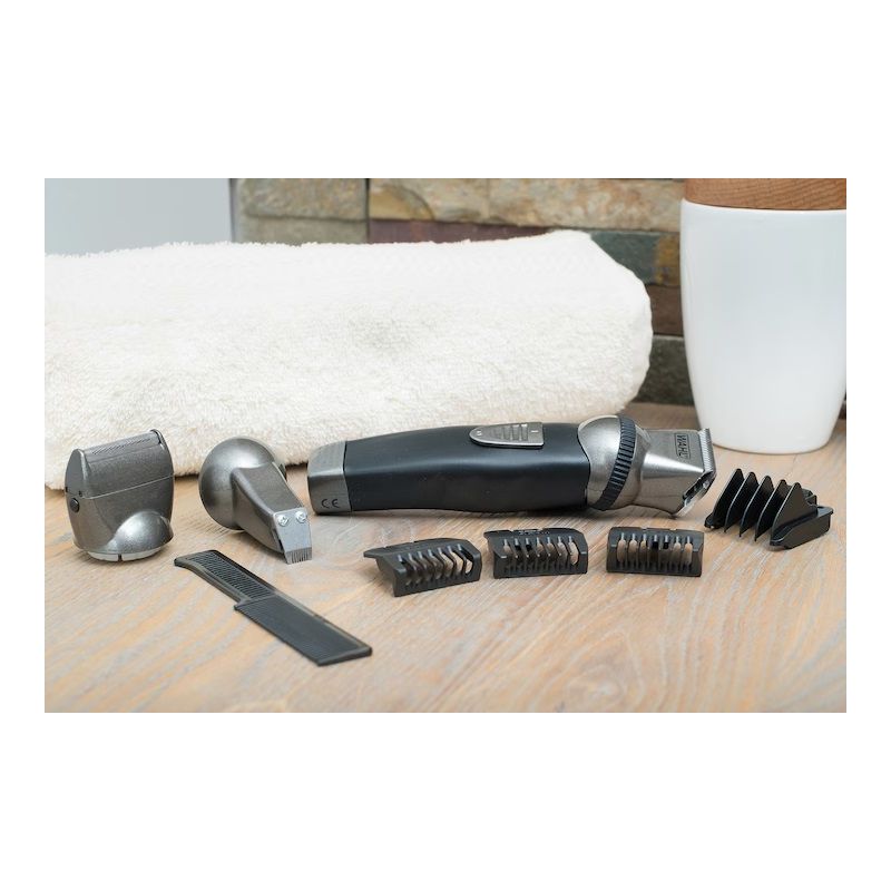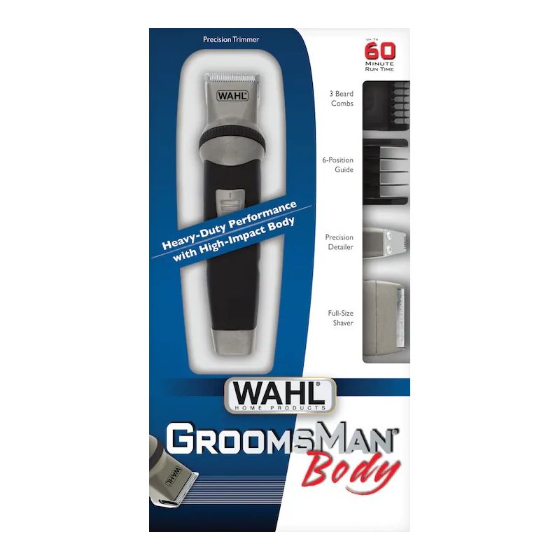 Features Wahl high-carbon precision ground blades for unbeatable trimming results. Includes standard width, wide T-blade, & detailing blade for beard & mustache trimming, hair cuts, touchups, body grooming & detailing.